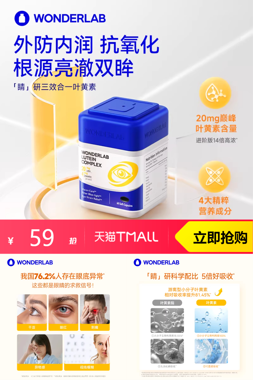 WonderLab叶黄素胶囊60粒*2瓶 283元减34 商品纠错