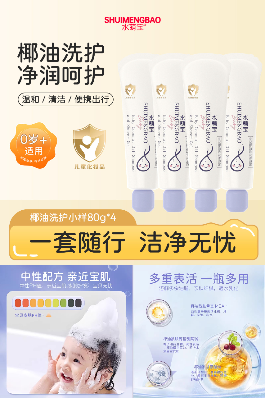 ⭕水萌宝椰油精华洗发沐浴旅行装80g*4