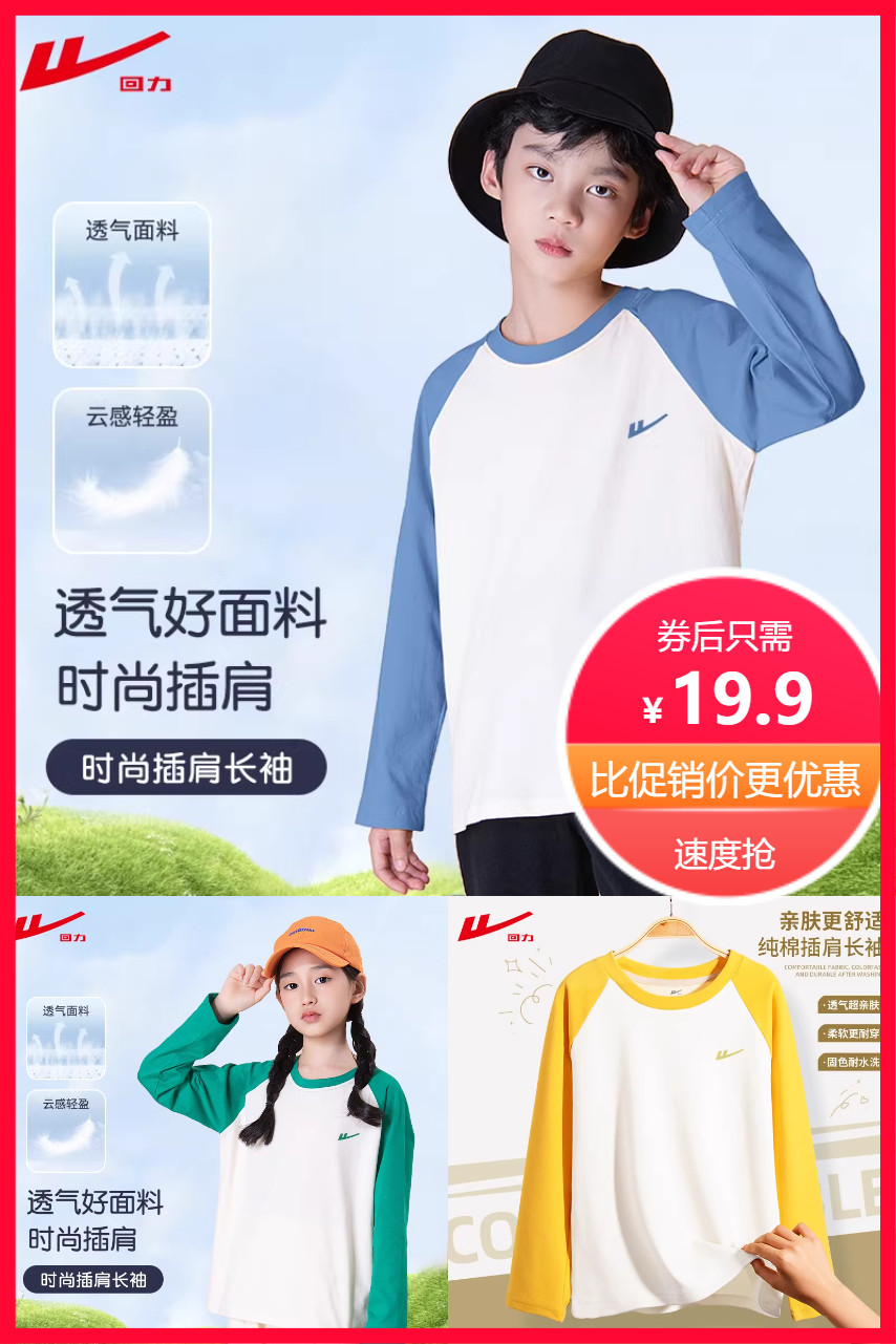 回力儿童春款新款长袖合集来啦!!男女童都有,尺码110-165cm,内搭外穿都很实穿,纯棉的,柔软透气,四五十多个款式任选.有运费险,赶紧撸