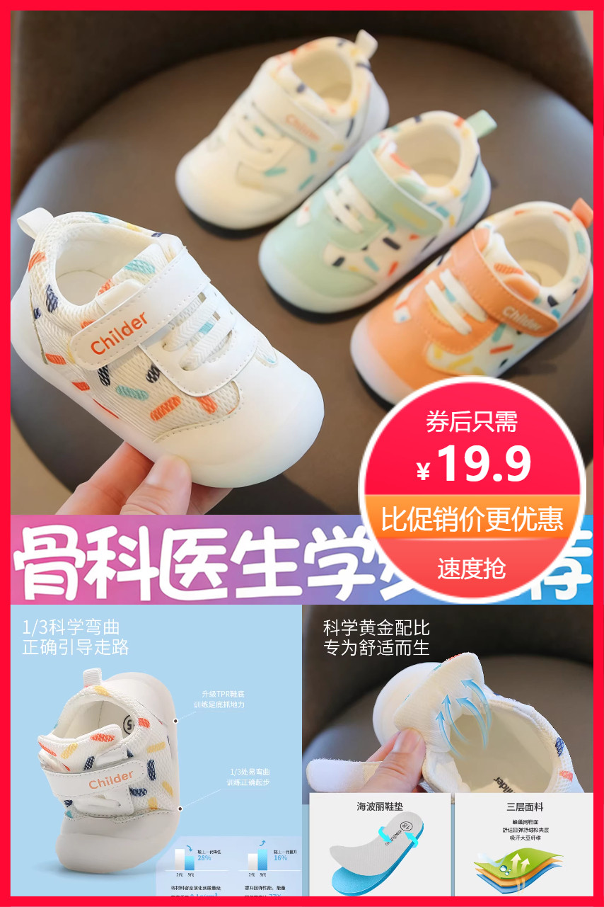学步鞋太萌啦!全码同价19.9,0-3岁男女童单鞋儿童鞋,健康学步,舒适不闷脚,单网/双网任选,大魔术贴可调节,高脚背也能穿,鞋底1/3柔软弯曲,中底板支撑引导宝宝走路,鞋底稳固防滑软底,全.网爆款赶紧冲!