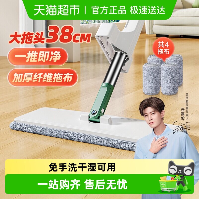 推荐:美丽雅加大平板拖把1套干湿两用