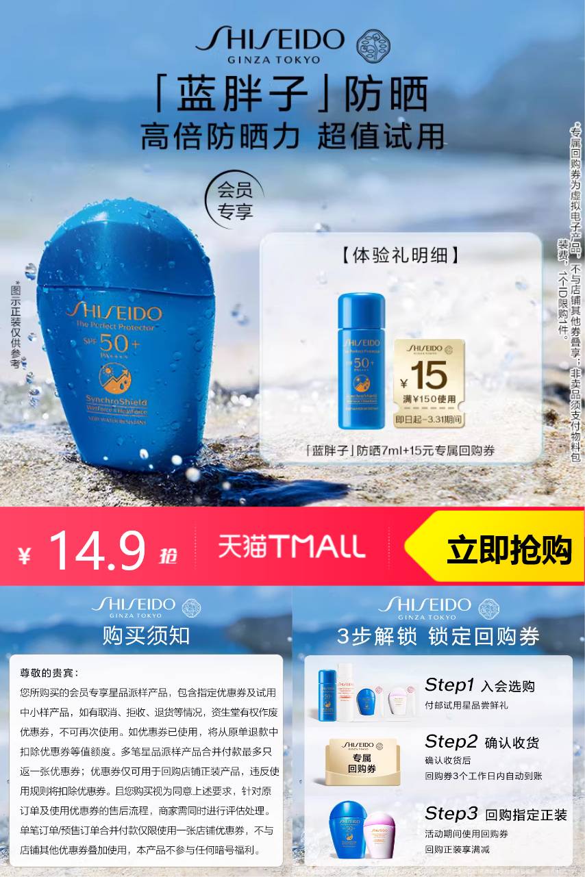 ⭕【天猫U先】资生堂蓝胖子防晒霜7ml