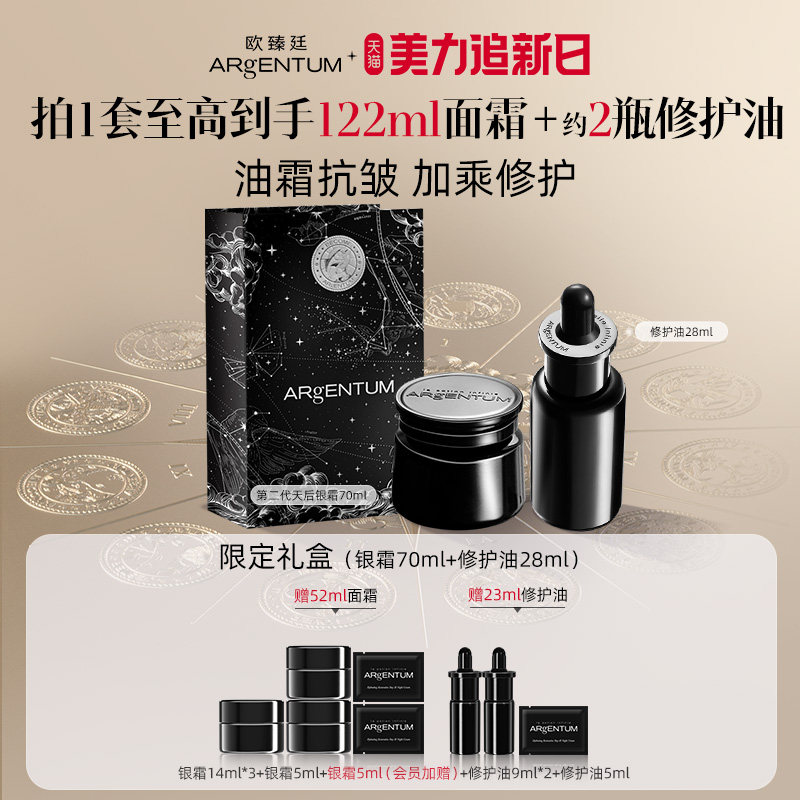 欧臻廷双子星礼盒第二代抗皱修护面霜银霜70ml+精华油修护油28ml,是ARgENTUM/欧臻廷旗舰店推荐的商品。这款产品含有先进的成分,能够有效对抗皱纹、改善肌肤问题,为您的肌肤提供的护理。使用后,您将感受到肌肤的显著改善,让您更加自信美丽。