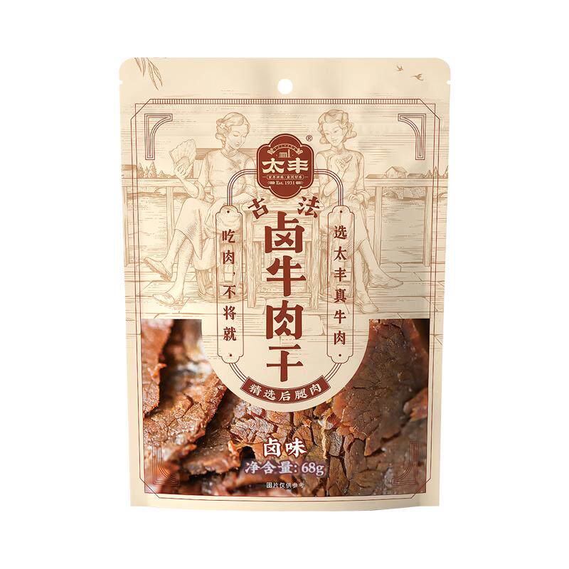 来自太丰的品牌特色产品——古法卤牛肉干,采用传统秘制工艺,口感鲜美,回味无穷。无论是作为零食还是休闲小吃,都是您的不二之选。