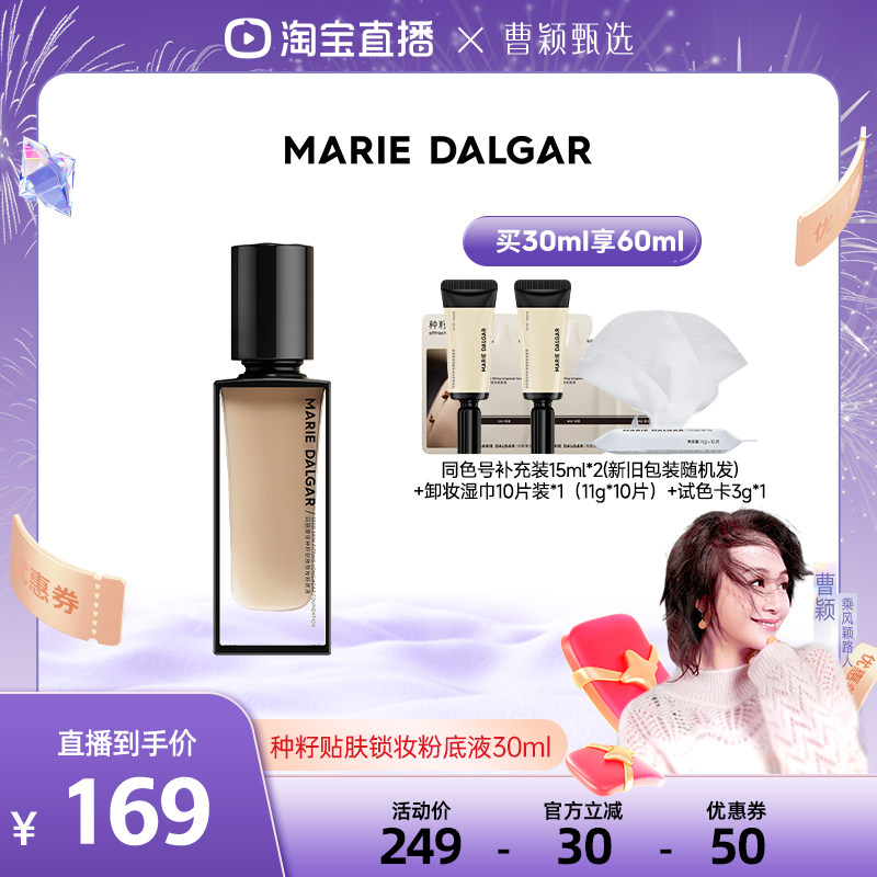 【曹颖直播间】玛丽黛佳种籽粉底液干皮混干皮挚爱细腻持妆遮瑕,是你的底妆选择。