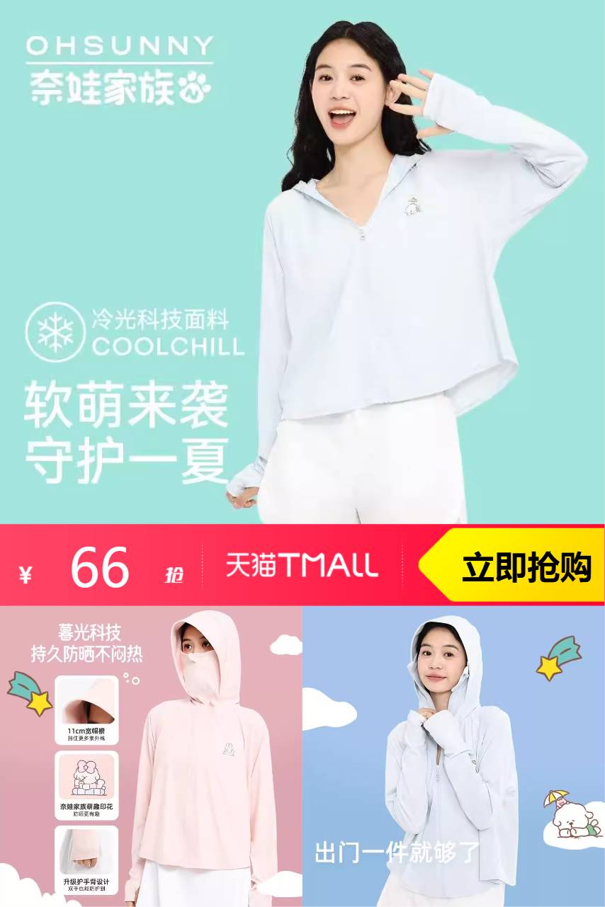 【叠加2元淘金币到手66元】奈娃家族xOhSunny联名防晒衣女,凉感舒适,防晒透气,夏日出行必备!拍2件仅需99元,限时优惠,快抢!