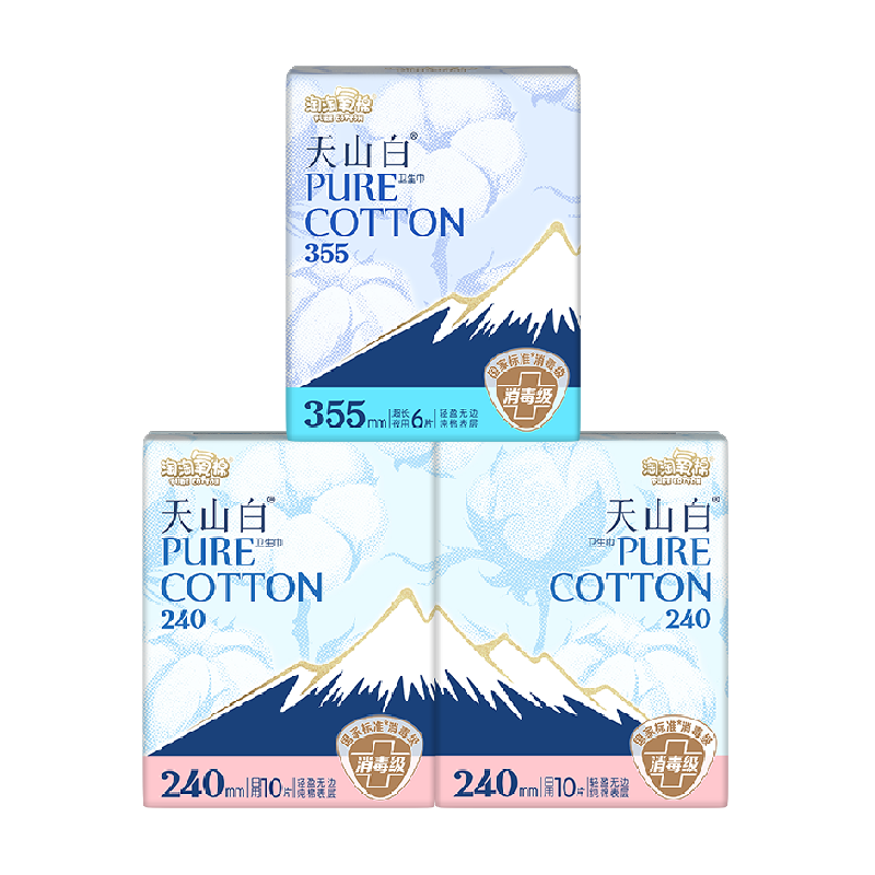 【杨紫同款】淘淘氧棉天山白消毒级纯棉卫生巾日夜组合超薄,国标消毒级别。柔软舒适,适合日常使用。