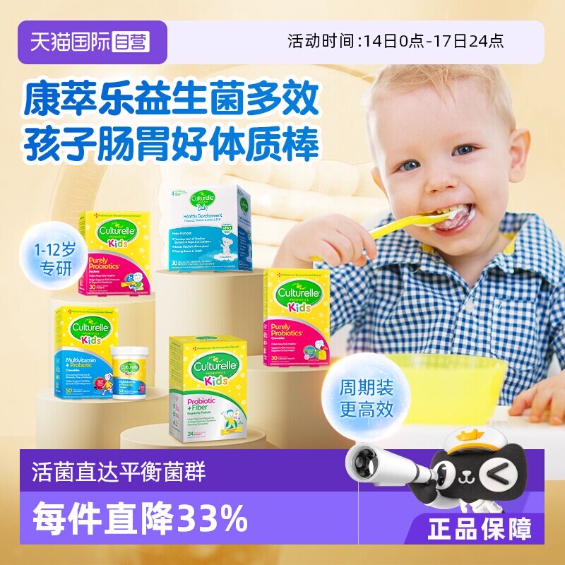 【康萃乐】儿童益生菌调理宝贝肠胃,精选多种有益菌株,帮助改善肠道健康,促进消化吸收。采用天然原料,无添加防腐剂,安全。适合不同年龄段的孩子使用,呵护宝宝健康成长。