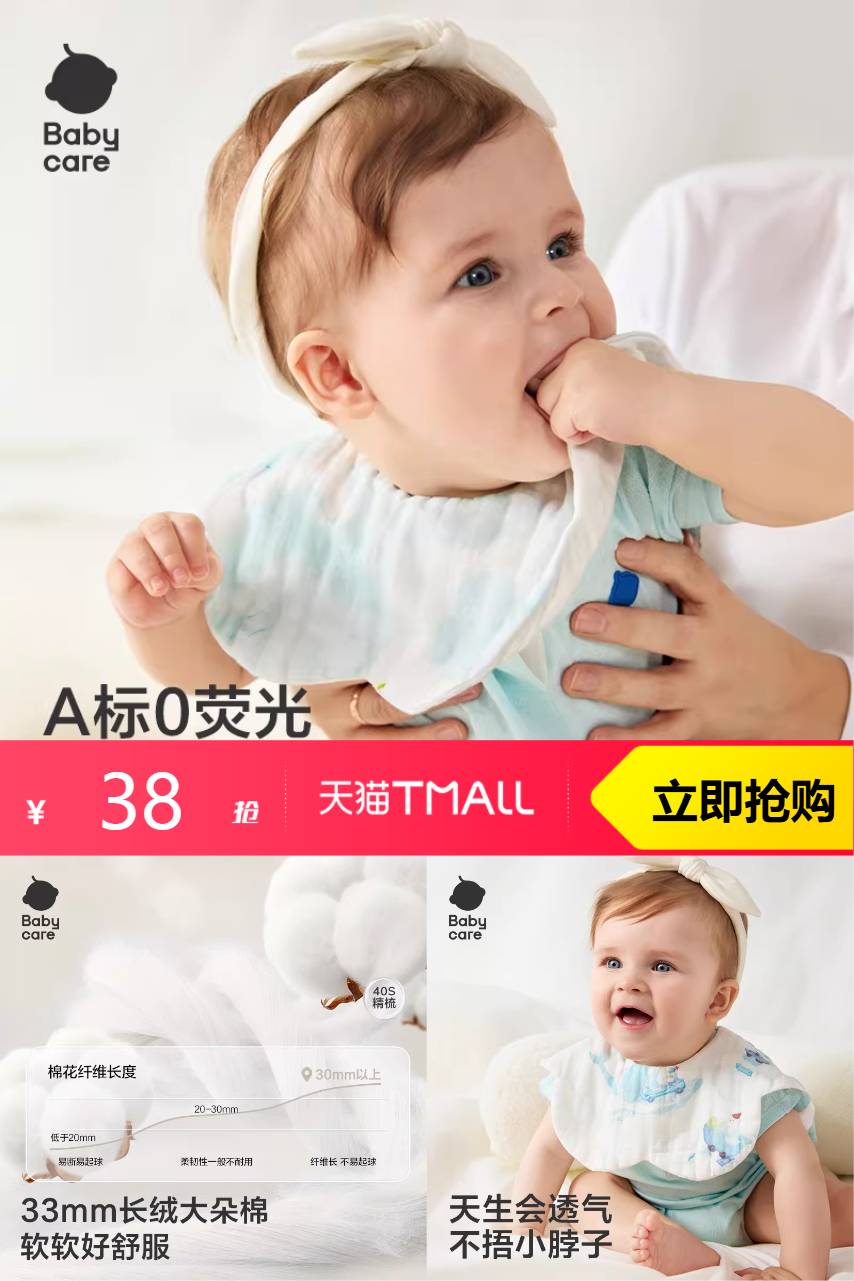 【叠加1元淘金币到手38元】细腻紧实,如云般柔软触感吸水透气性更加,0添加化学剂,守护宝宝敏感肌肤,符合国家婴幼儿A类标准,无荧光剂,温和不刺激。