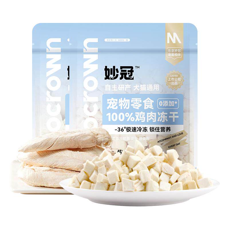 推荐:妙冠宠物猫零食冻干鸡肉粒鸡胸肉猫咪营养有助增肥成幼猫零食