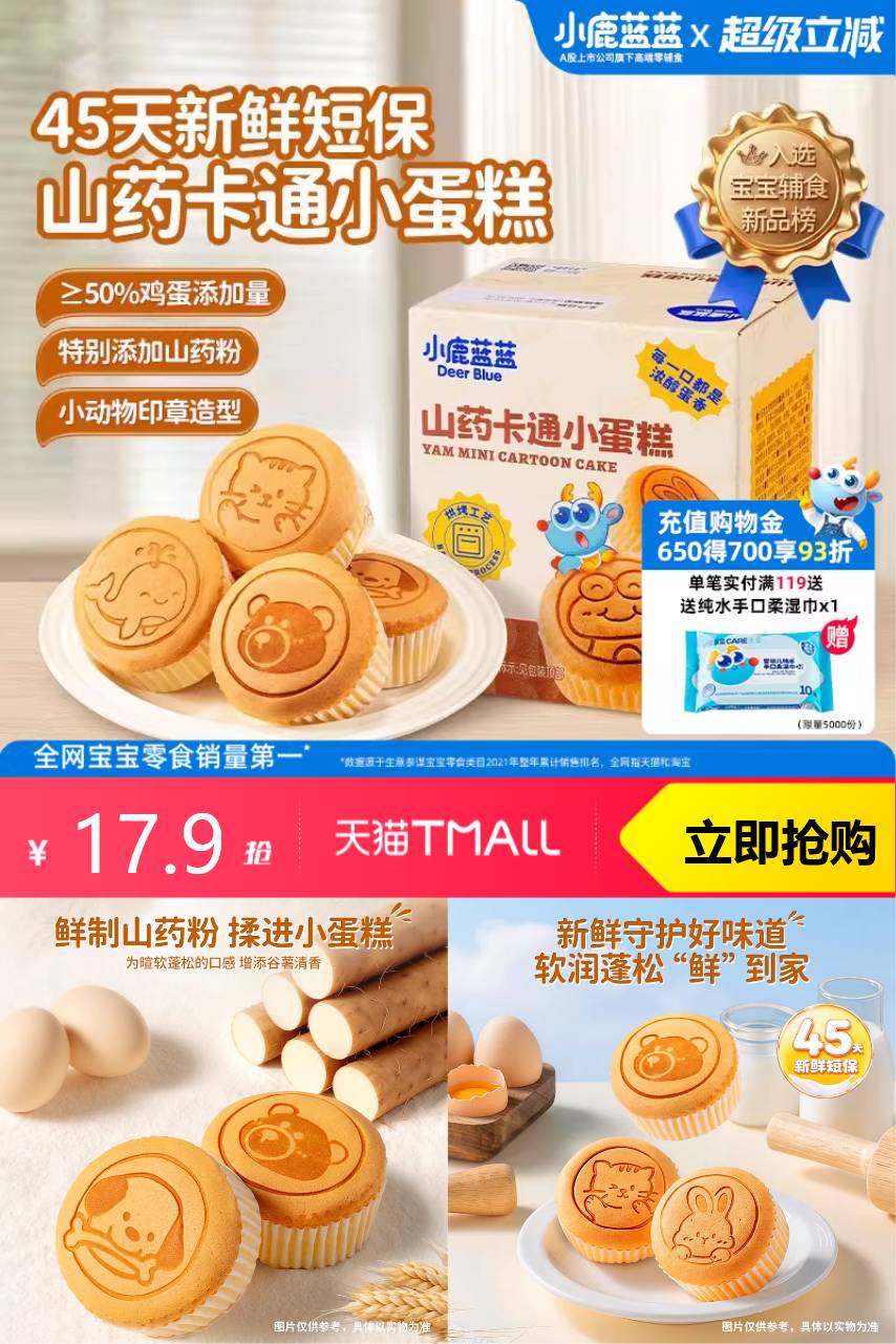 【原价24.9-超级立减5-88vip1-新品礼金2=到手价16.9元】,小鹿蓝蓝山药蛋糕卡通造型面包早餐儿童零食宝宝辅食休闲零食