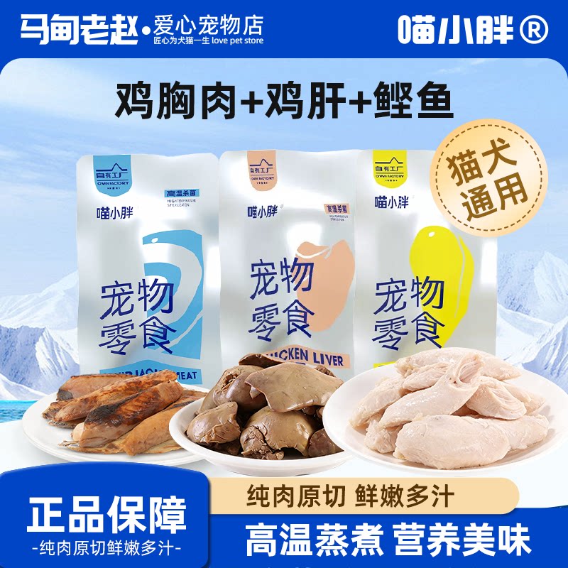 推荐:马甸老赵喵小胖蒸煮鸡胸肉鸡小胸即食湿粮鸡胸鸡肝鲣鱼条猫犬通用