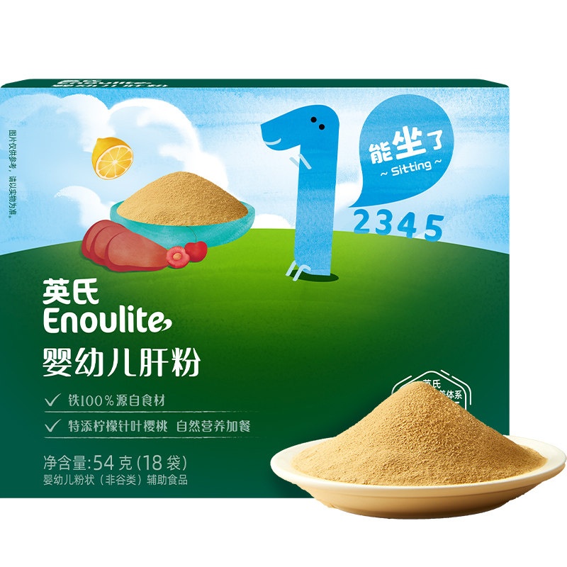【拍2盒凑后35.94/盒赠送1阶婴标果泥】英氏猪肝粉,婴幼儿补铁补血,幼儿拌饭调味粉,干净配料,营养自然天成,自然食补,温和不刺激。