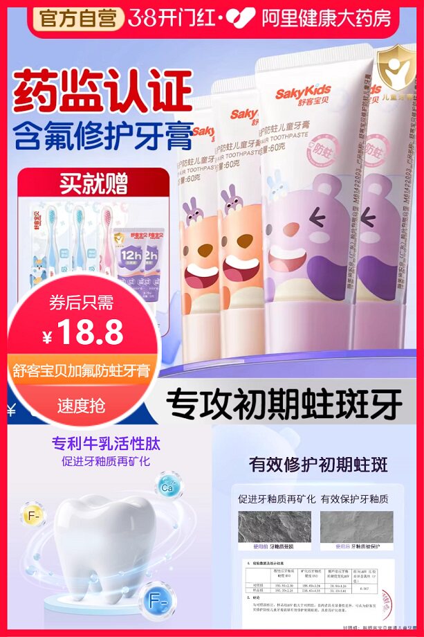 买就送抗糖牙膏10g*2支+护齿牙刷1支到手5件,超级立减20元+券20元+淘金币省1元+88vip省0.99元+新客立减2元后约15.81元,正版联名,宝宝爱不释手,安全配方低氟防蛀牙!有效降低酸腐蚀!更加安全可靠!,满足不同孩子口味需求!!关键是2-12岁宝宝适用!