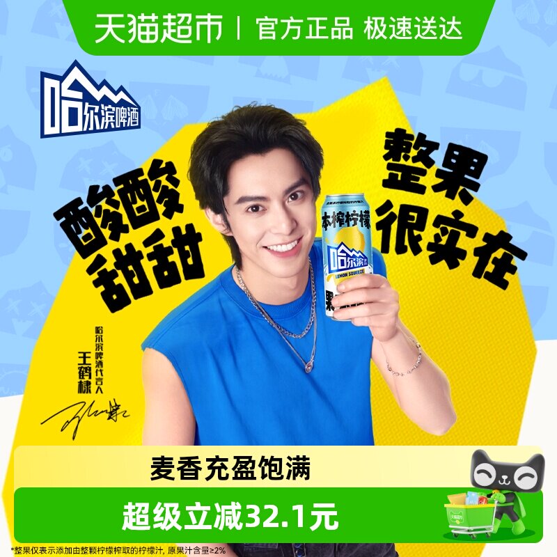 推荐:哈尔滨本榨柠檬果味啤酒12听整箱