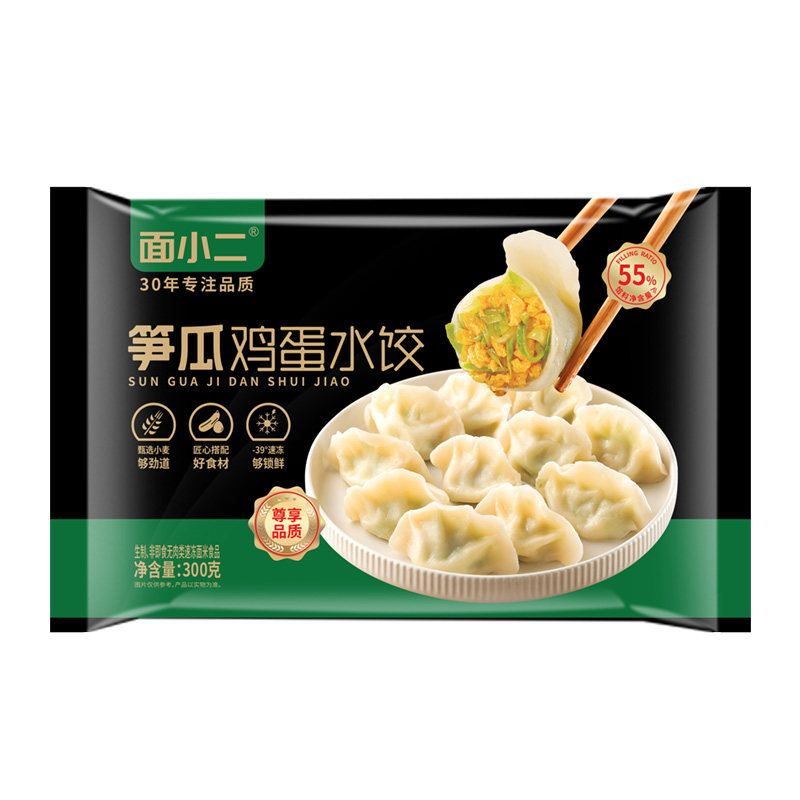 面小二旗舰店新推出笋瓜鸡蛋水饺速冻食品,精选优质食材,口感鲜美,方便快捷,是您家庭早餐、夜宵的理想选择!