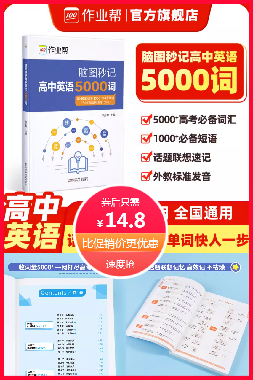 作业帮高中英语词汇5000词脑图秒记!3100课标词+1500必考拓展+100新课标新增,场景联想记忆法,记得牢、忘不掉~全彩印刷+思维导图+音频资源三合一教辅,省心高效,备考不走弯路!