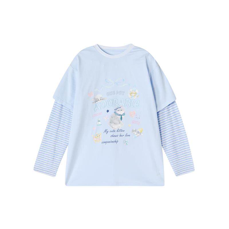 【假两件】DEESHA/笛莎童装女童春季新款长袖印花条纹T恤,精选优质面料,舒适透气,防风保暖。短款设计,轻松遮盖手臂,适合不同场合穿着。时尚潮流,百搭不腻,是您宝贝的单品。