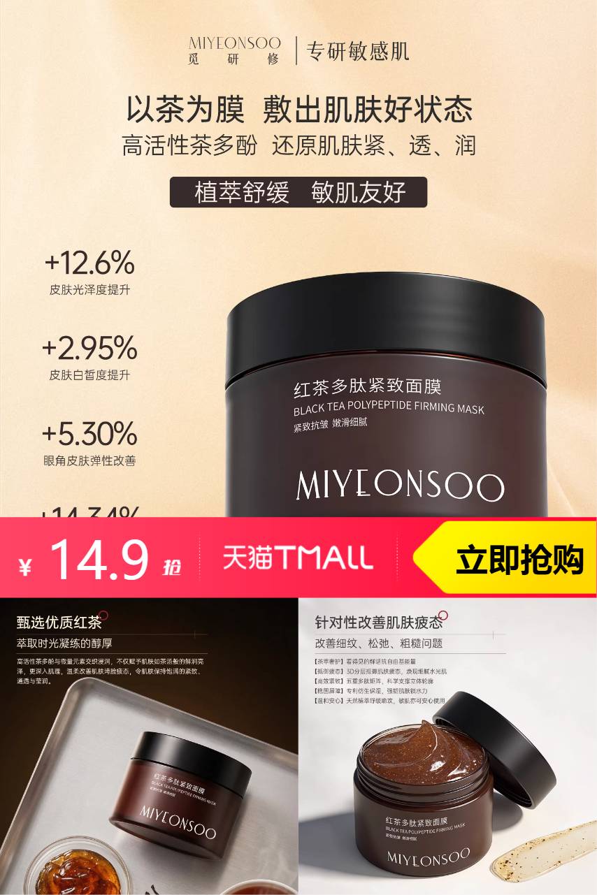 【原价89-商品券54-超级立减20.1-淘金币5.34=9.56元】这面膜的质地细腻,涂抹在脸上超级舒服,感觉就像给肌肤做了一次SPA。它的保湿效果超级棒,感觉肌肤瞬间喝饱了水,水润有弹性。