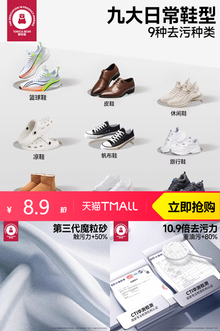 ⭕嘟咔熊擦鞋湿巾10抽便携装重油污专用免洗