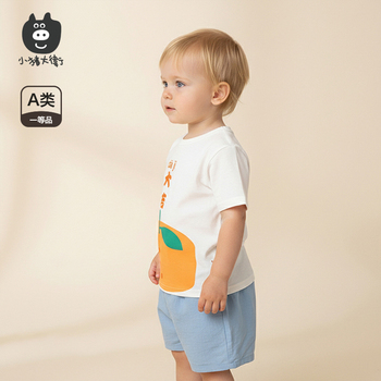 小猪大卫夏短袖T恤,纯棉材质,透气吸汗,圆领设计,宽松舒适,适合男女宝宝。搭配同款长裤,轻薄透气,夏日穿搭