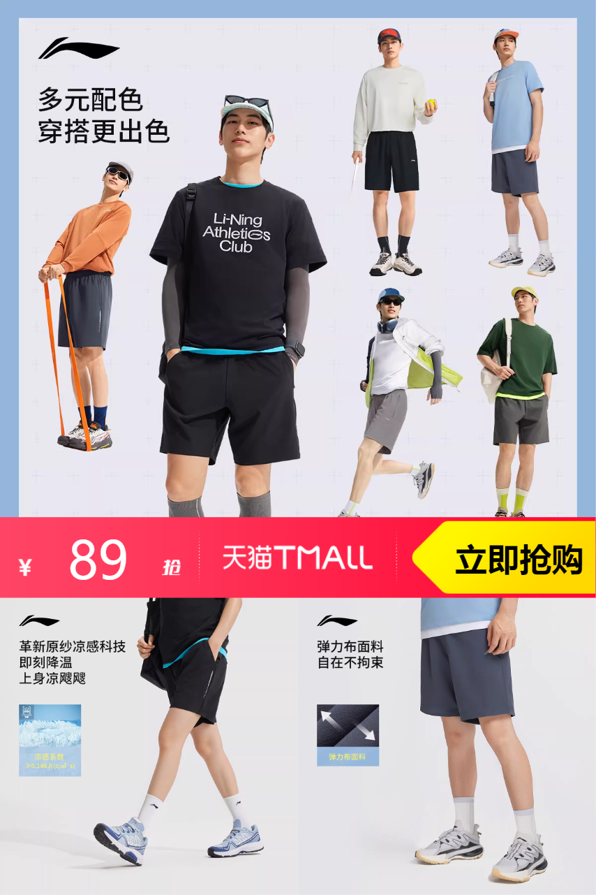 【可以凑消费券,运动户外券300-20后到手60左右】李宁速干裤丨运动短裤男款夏透气训练裤,凉感降温,弹力无拘。