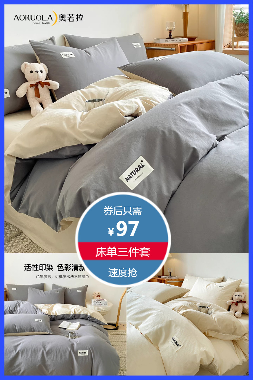 立减22元,淘金币叠加劵到手93.42元!奥若拉新款A类全棉床单三件套0.9cm/1.2m床,适合150x200cm被芯,多色多尺寸可选,全棉水洗棉面料,触感柔滑细腻,亲肤透气,不易褪色,不易起球,耐洗耐用,AB双版撞色设计,体验时尚色彩