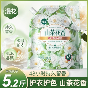 家人们快冲漫花洗衣液!5.2斤一袋,山茶花或茉莉香可选,香味超迷人。清洁力强,轻松去污,守护全家衣物洁净~