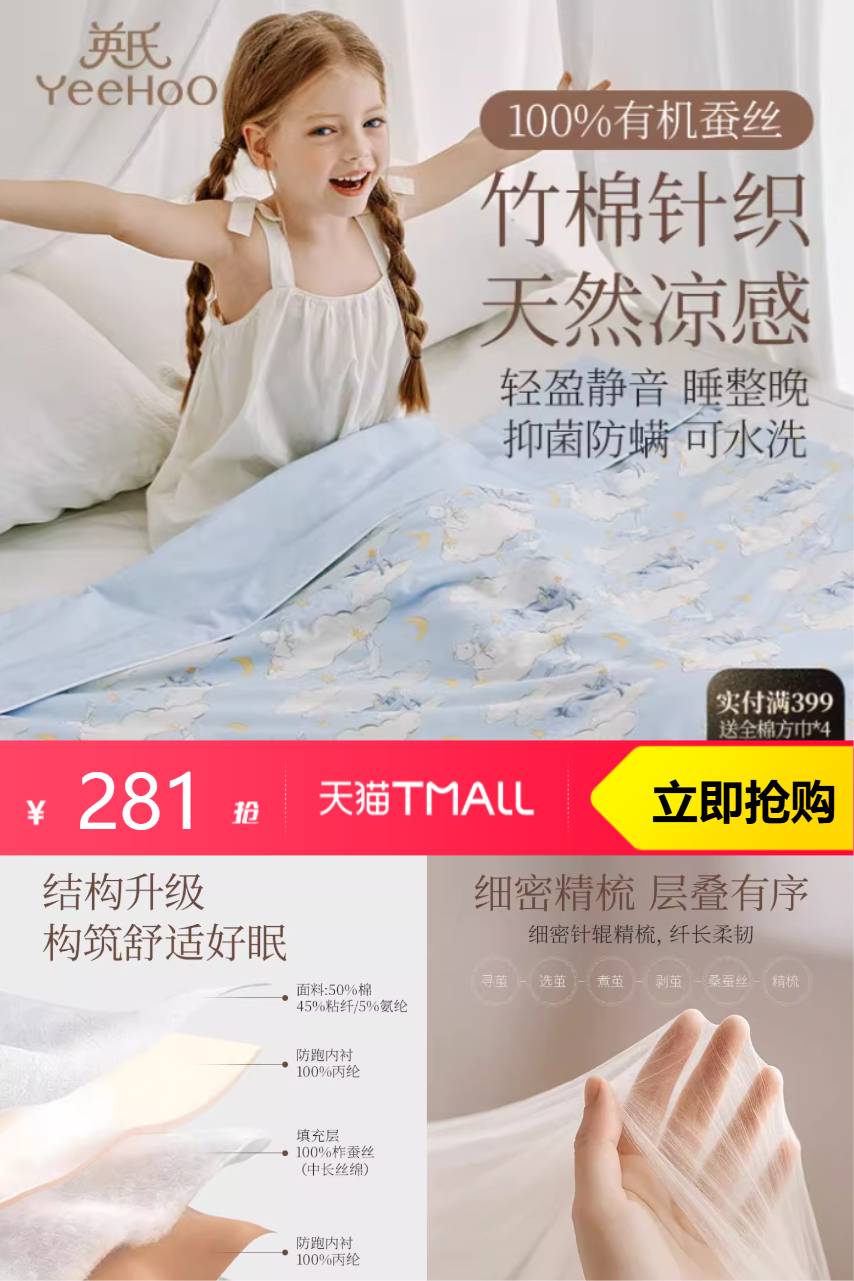 ⭕英氏A类竹棉针织蚕丝被夏凉被空调被子