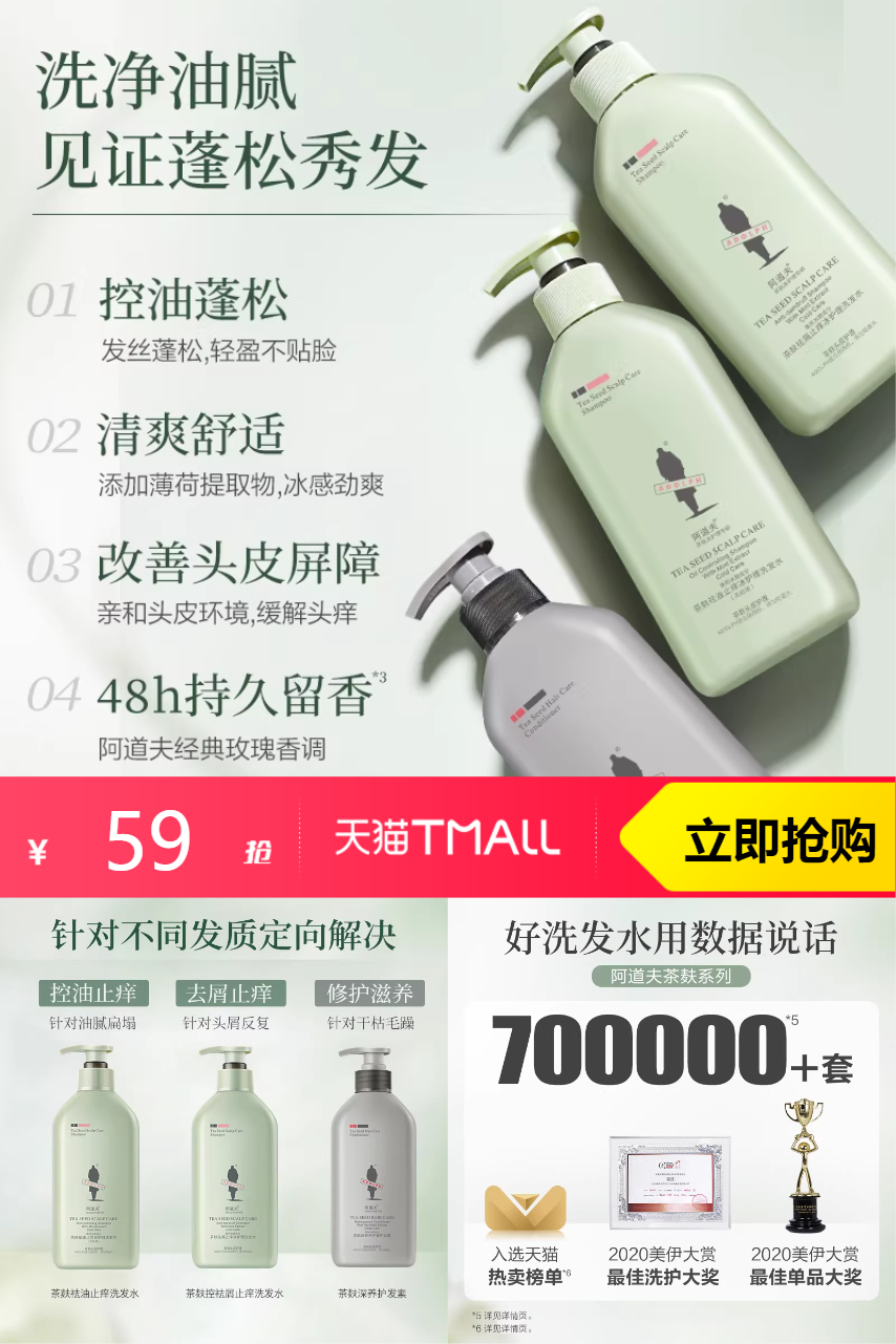 ⭕拍3阿道夫茶麸祛屑冰护理洗发水350ml
