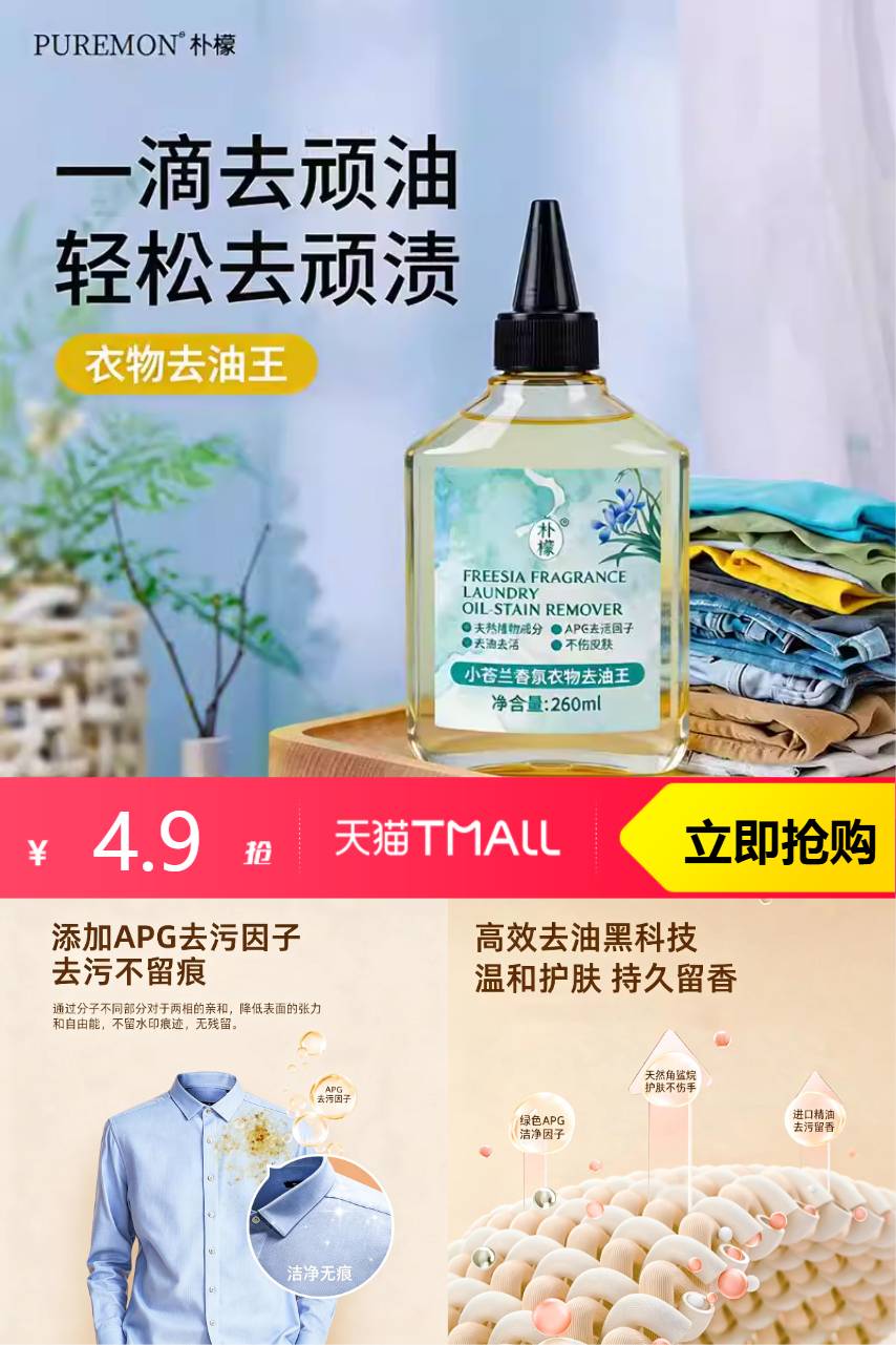 【原价21.5元,官方立减2.6元,淘客券减14元,淘金币抵扣0.4元,综合到手价4.5元】高效渗透技术,直达衣物纤维深处,瞬间清洁。你的衣物不再需要等待!立刻洁净如新!清爽宜人,焕然一新。