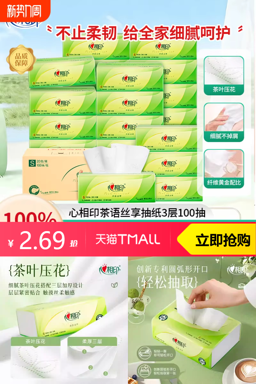 心相印 心相印抽纸云绒乳霜纸巾90抽母婴保湿家用 7.6元减4.91 商品纠错