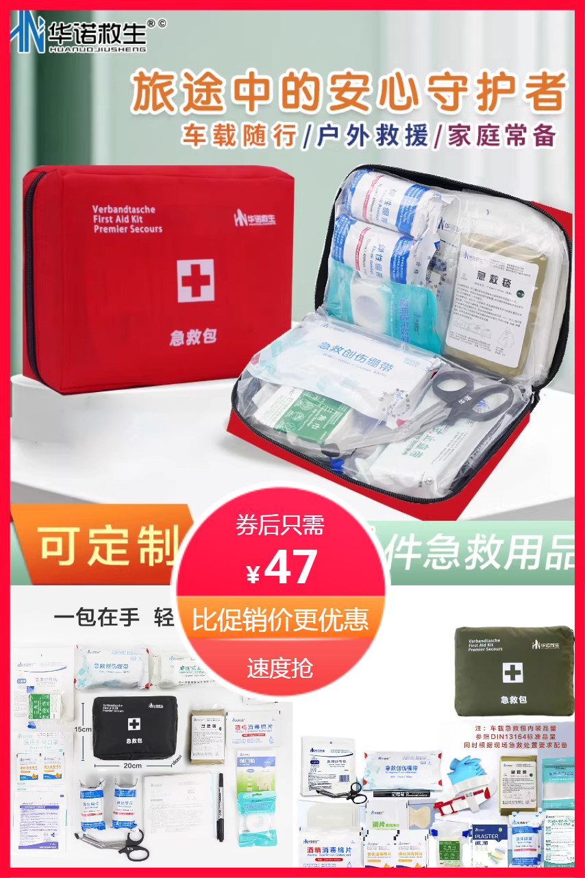 【淘金币约40元】华诺救生车载急救包,内装全新日期,含20+专业医疗用品,通过国家应急产品认证,安全可靠有保障!便携设计适配轿车/越野/SUV,家庭出行、自驾游、日常通勤应急无忧~