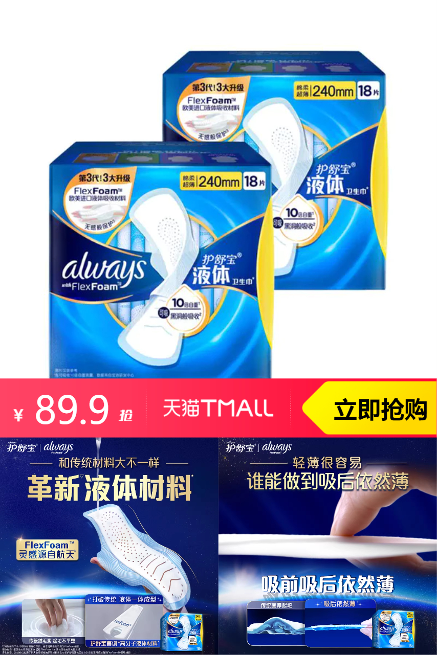 ⭕【百亿补贴】护舒宝新液体卫生巾52片