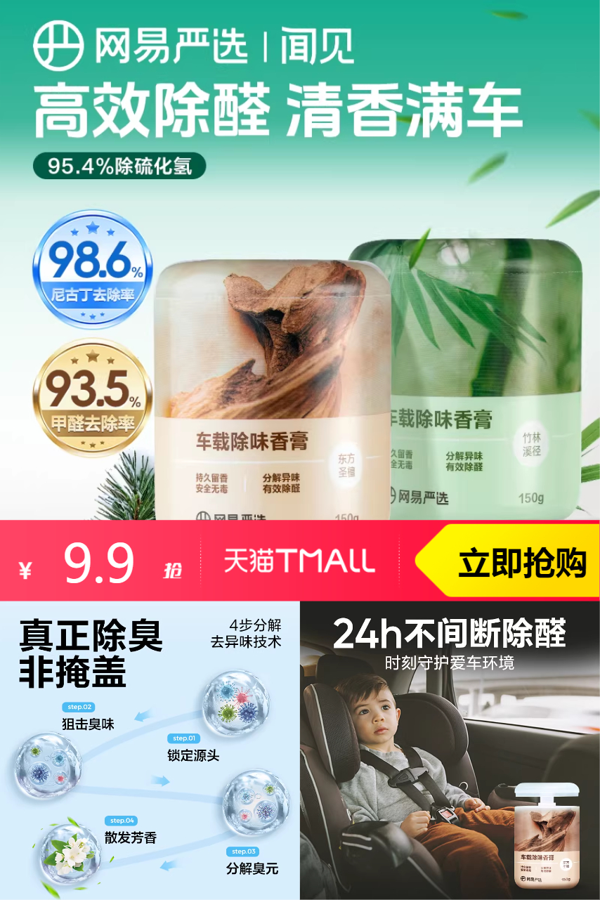 【淘金币抵扣2.38,新客礼金1元,到手6.52元】网易严选车载香薰150g,高效除醛,清香满车。