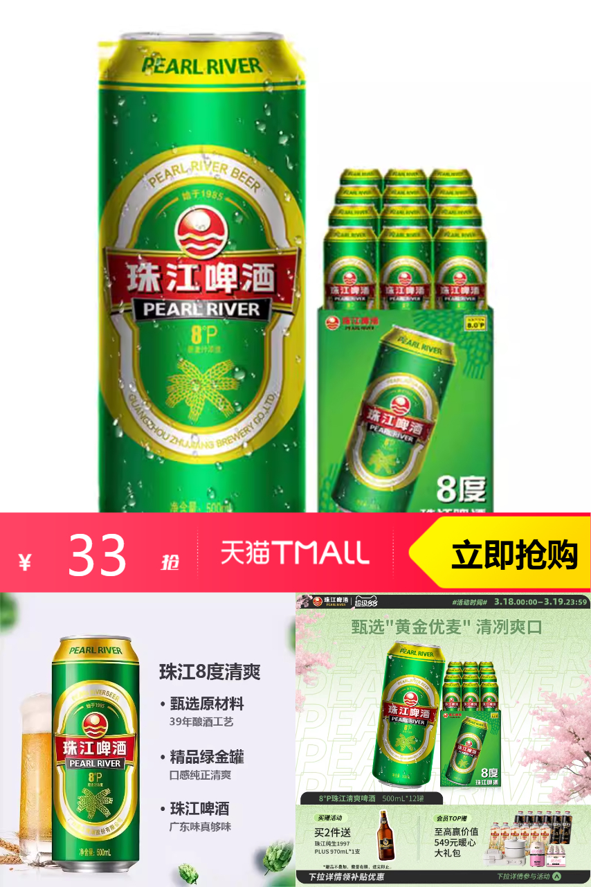 珠江啤酒整箱500ml*12罐拉格黄啤 43元减10 商品纠错