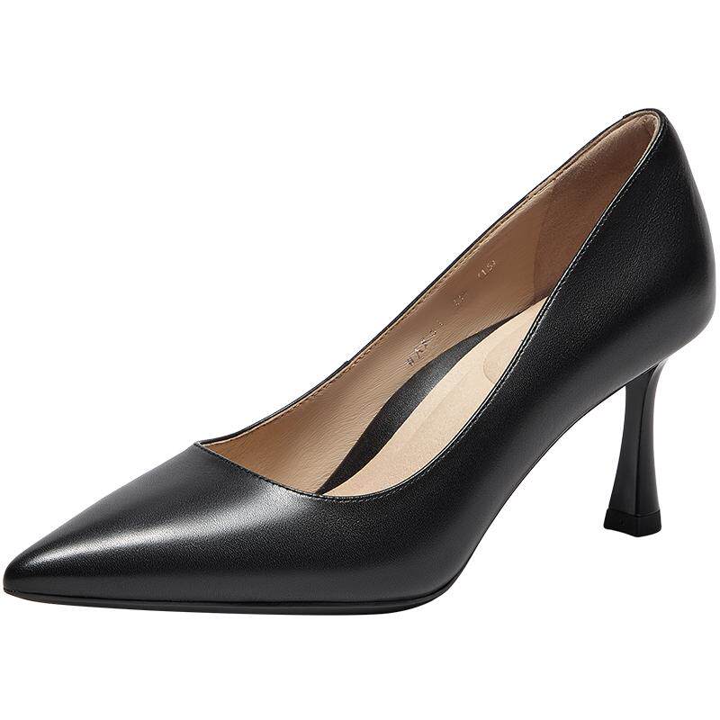 【精选款】HGK旗舰店全新上市,专为您的美丽打造!黑色尖头浅口真皮设计,舒适度满分,无论何种场合都能让您自信满满。