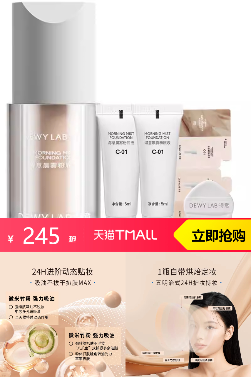 【原价299—官方立减54—限时补贴20—88VIP11.25-淘金币2.99—红包30=到手价180.76元】精致妆容的秘密武器!细腻质地,轻松打造晨雾般裸妆感。