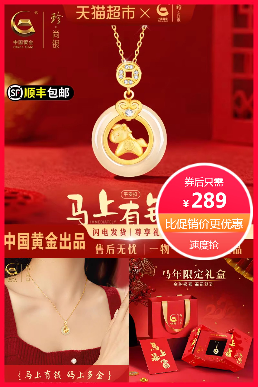 【官方立减76.29元+政府补贴抵扣16.94元+淘金币抵扣7.5元+88VIP95折抵扣14.45+消费券满200减25元到手约203元】限时惊爆价‼珍尚银S925小马平安扣项链,纯银Q萌设计,马上转运,Q萌小马+和田玉吊坠,温润亲肤,送礼/自戴都很体面