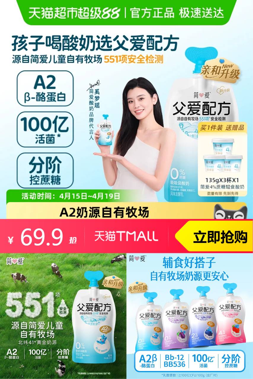 【88vip3.5,礼金6.99,金币8.54,到手50.87,叠消费券200-25,到手43.81,赠轻食酸奶135g*3杯】精准控糖超健康!宝宝辅食酸奶,成分纯净无添加,生牛乳~乳清蛋白~乳酸菌,其他没了,宝宝放心喝、妈妈更安心~