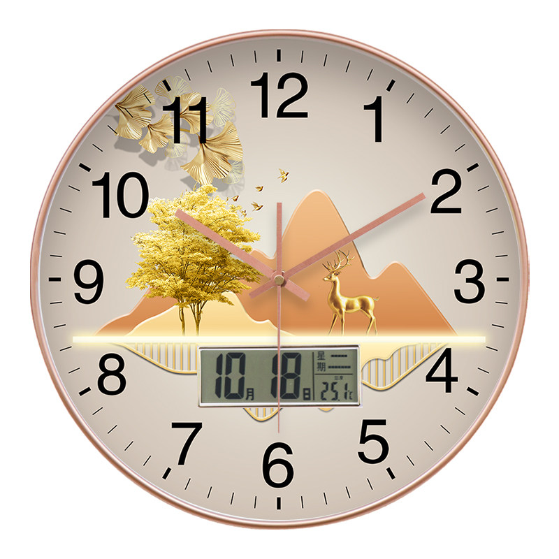 推荐:高档长续航客厅静音挂钟家用创意挂墙画石英钟电子时钟不挑电池