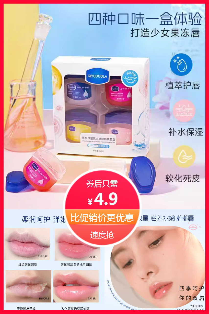 ⭕天啊拼了,只要4.9【一盒4个】唇膜套盒