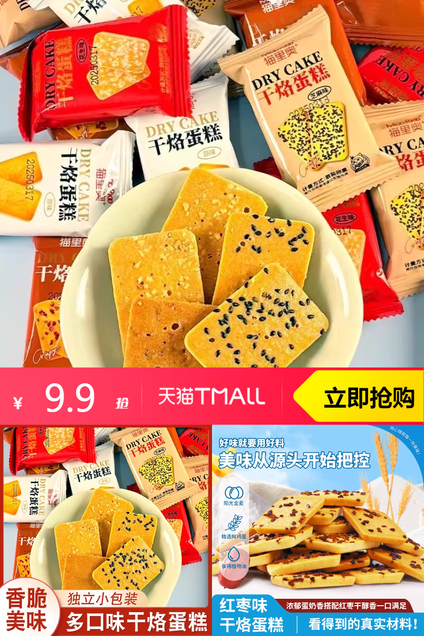 【百补,领百补金刚券,到手8.91】🌳猫里奥红枣味干烙饼干选用了上等红枣,每一颗都经过精心挑选和烘焙,保证了饼干的美味和营养价值。而独特的干烙工艺,更是让饼干外酥内软,口感超赞!