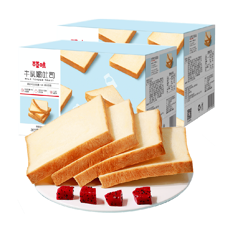 推荐:百草味牛乳嫩吐司500g*2面包糕点休闲零食小吃营养早餐代餐囤货装