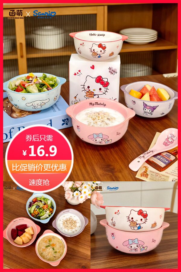 ⭕正版授权三丽鸥餐具饭碗陶瓷双耳碗