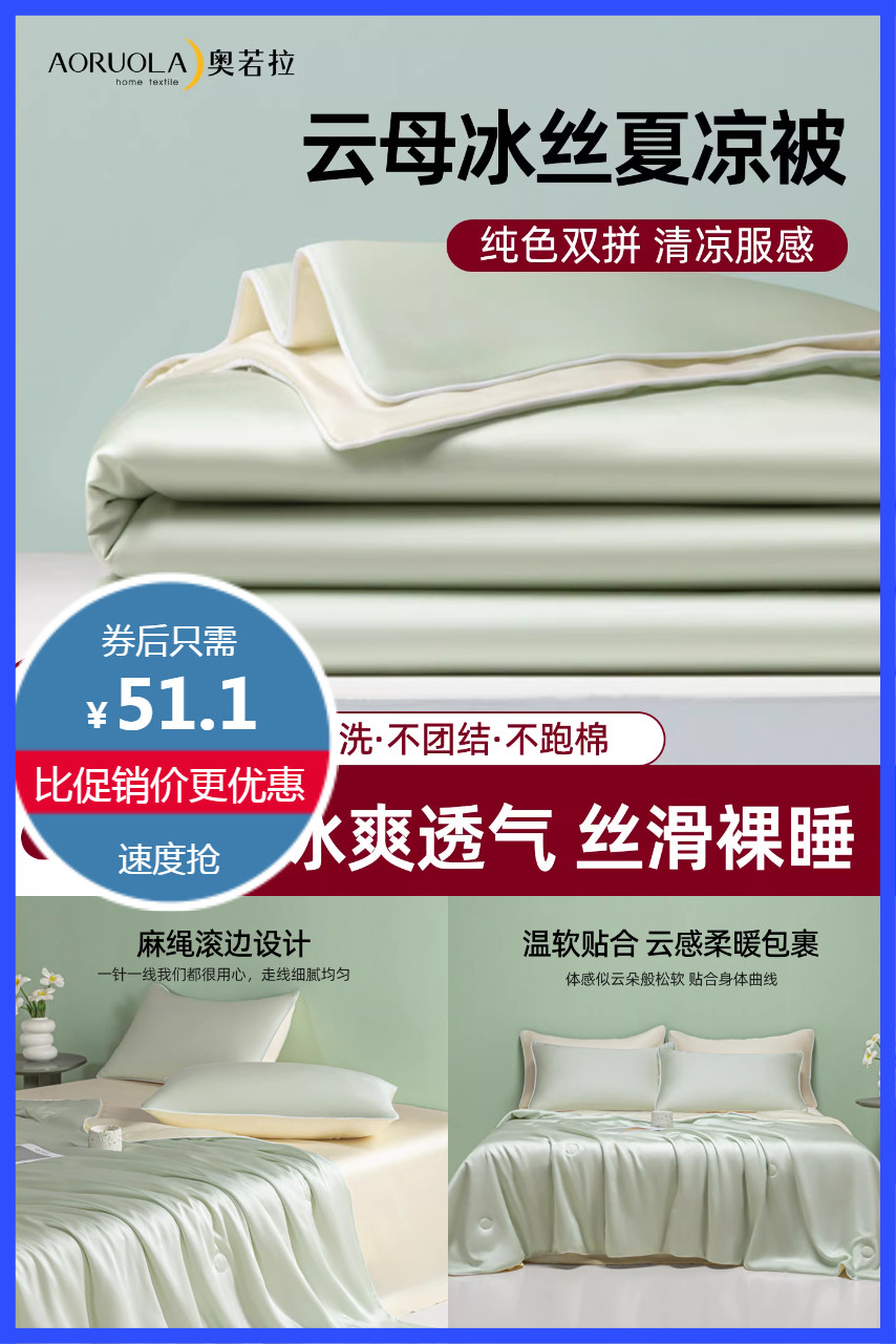 立减7.9元+淘金币叠加劵到手49.52元!奥若拉A类新款凉感夏凉被空调被子150*200cm,多色多尺寸可选,纯色双拼,清凉服感,A类裸睡级面料,可机洗·不团结·不跑棉,冰爽透气!