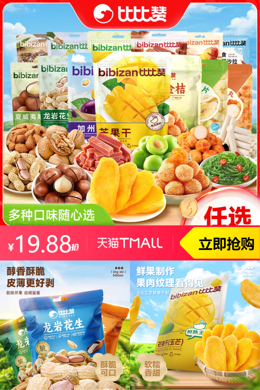【合计单件/3.31元】拍6 比比赞坚果蜜饯零食任选组合,多种口味随心选,30多种爆款荟聚。