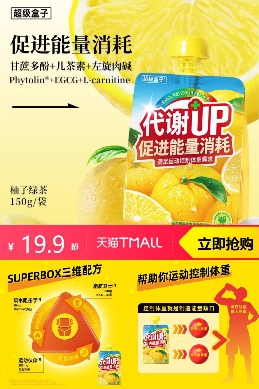 ⭕12袋超级盒子柚子绿茶果冻饮料150g