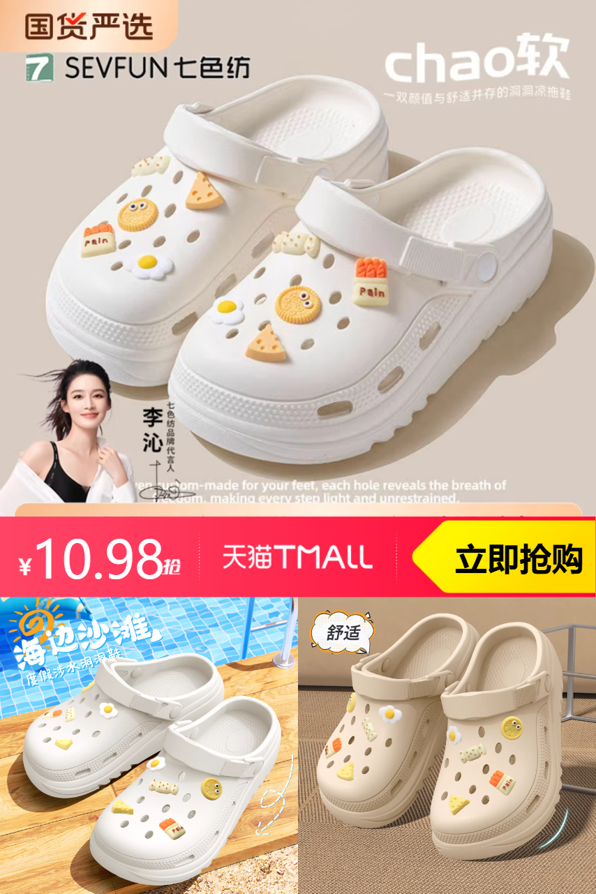 ⭕七色纺防滑洞洞鞋女款夏季家居厚底透气