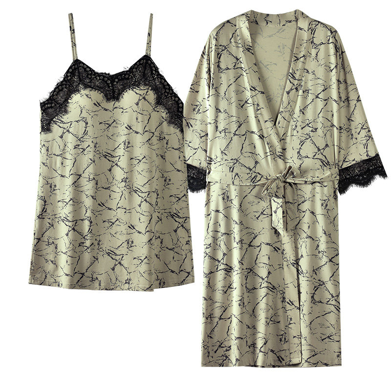 ⭕雅鹿睡衣女吊带三件套系带睡袍